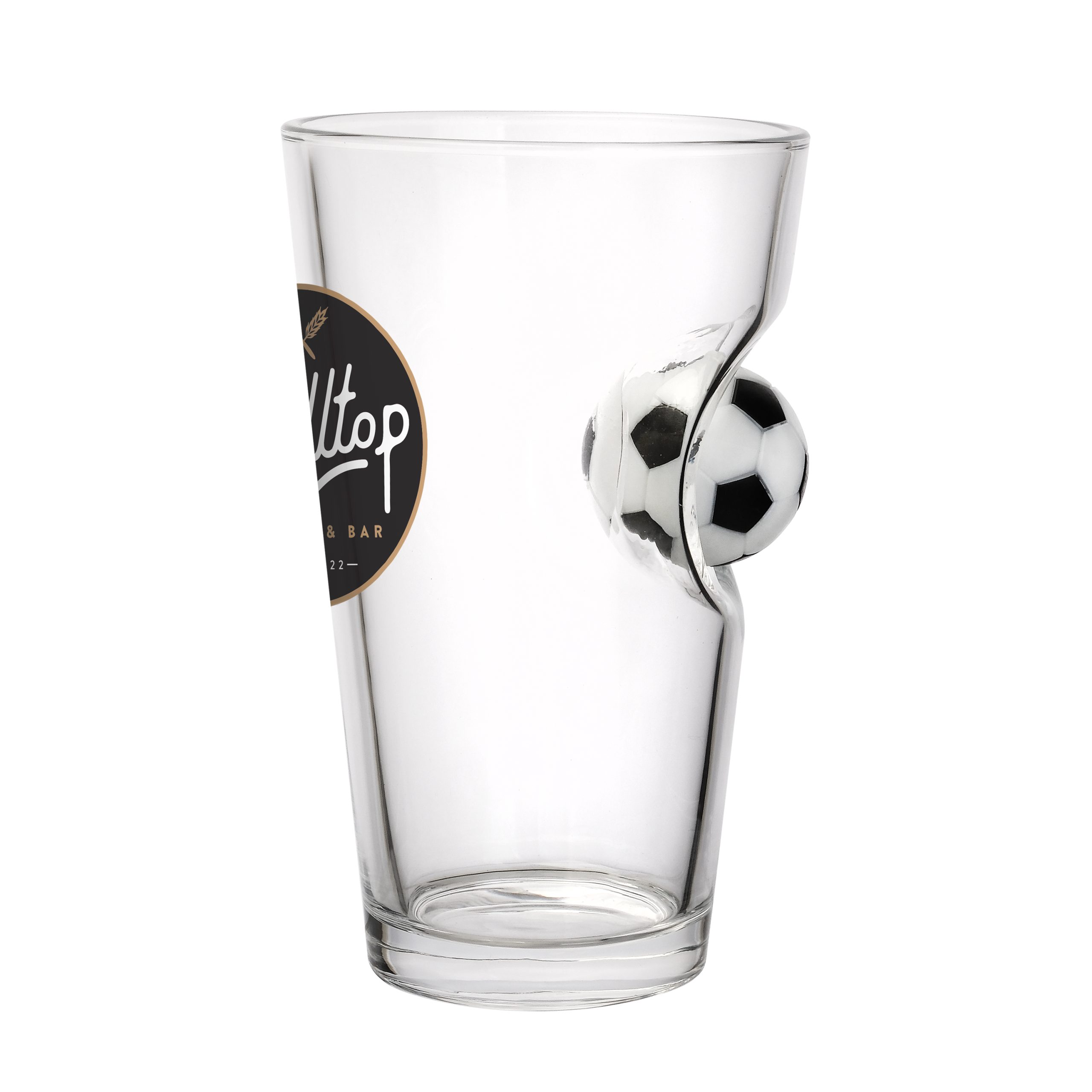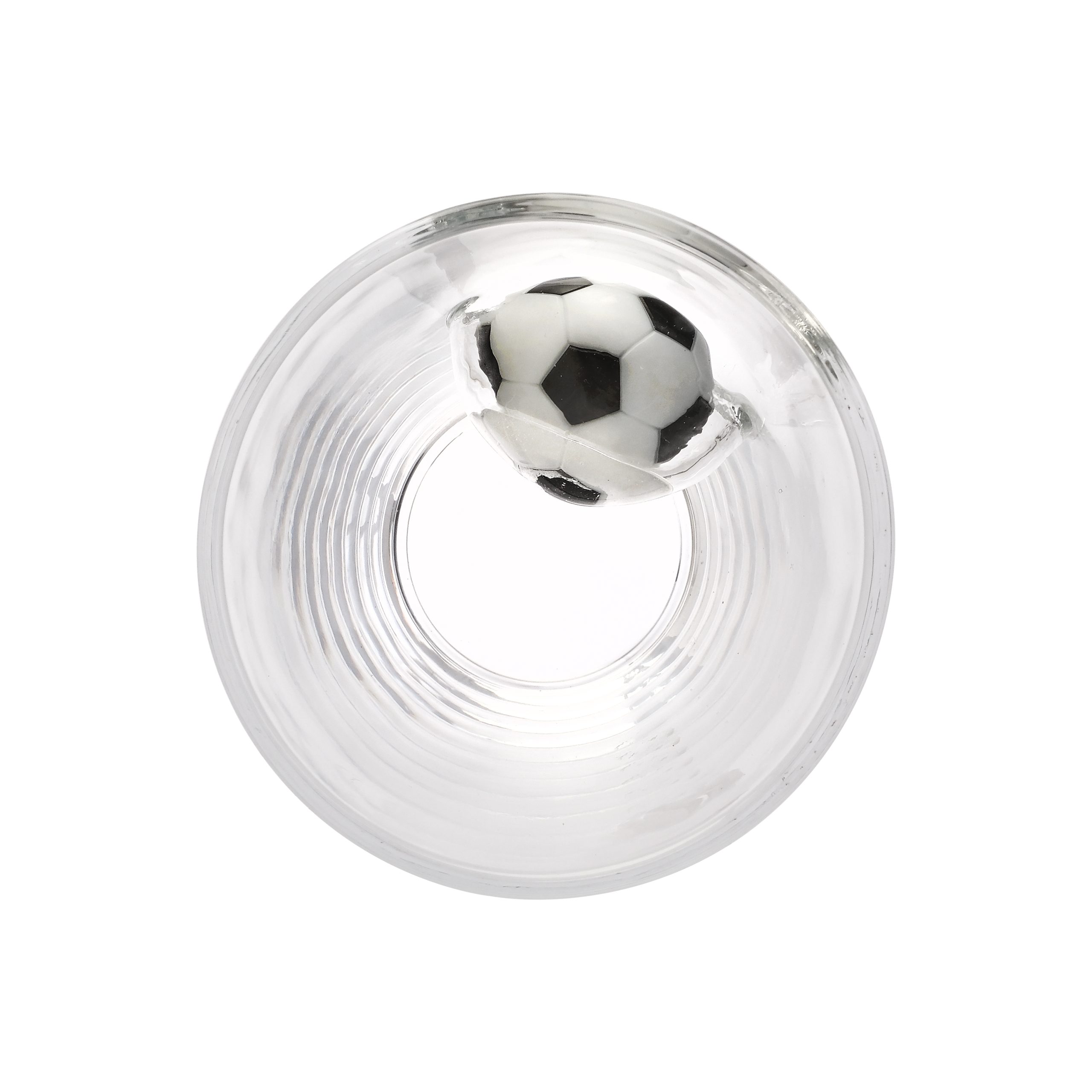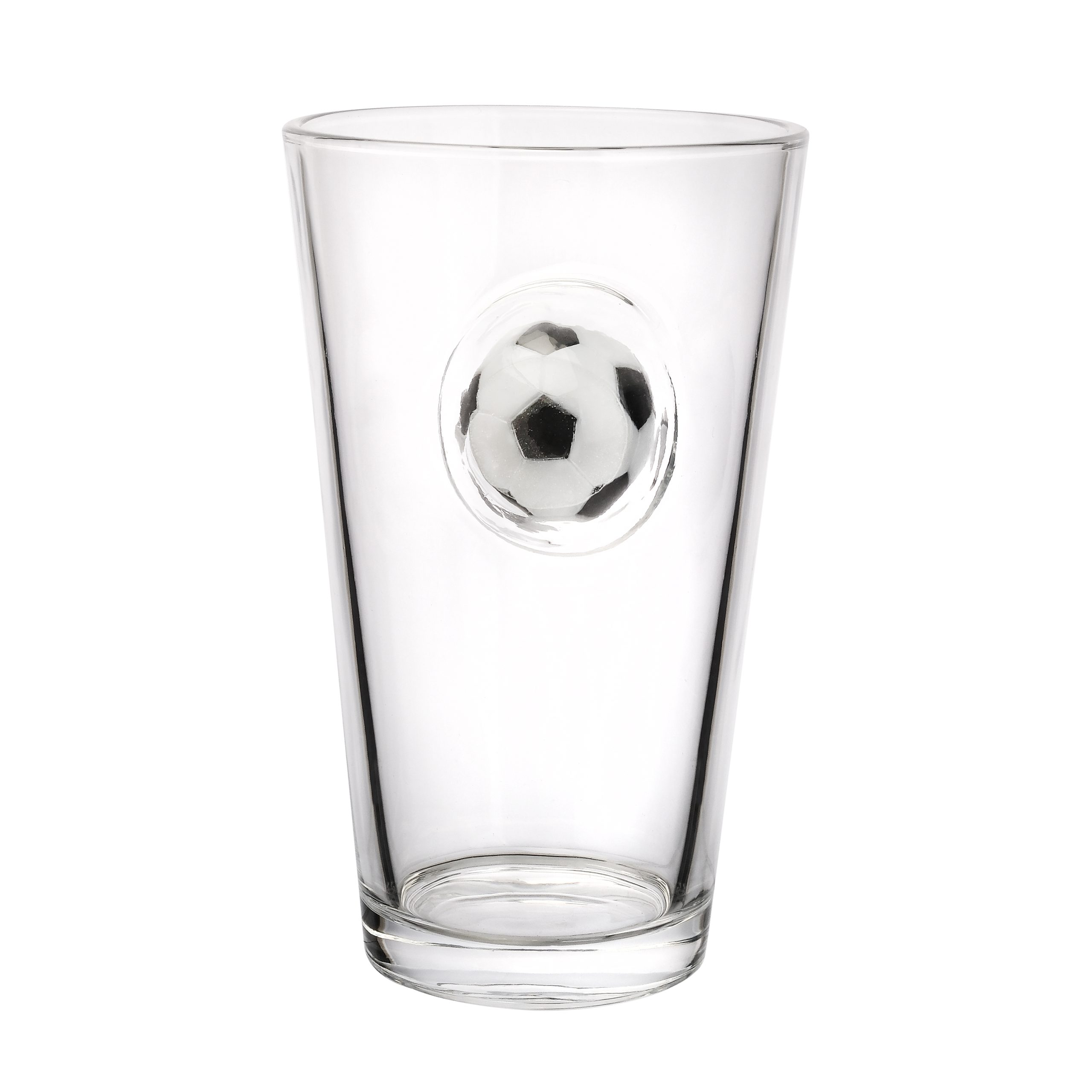 FEATURES: • 14oz capacity • Fun embedded 3D soccer ball design • Thick, durable glass • Smooth drinking edge