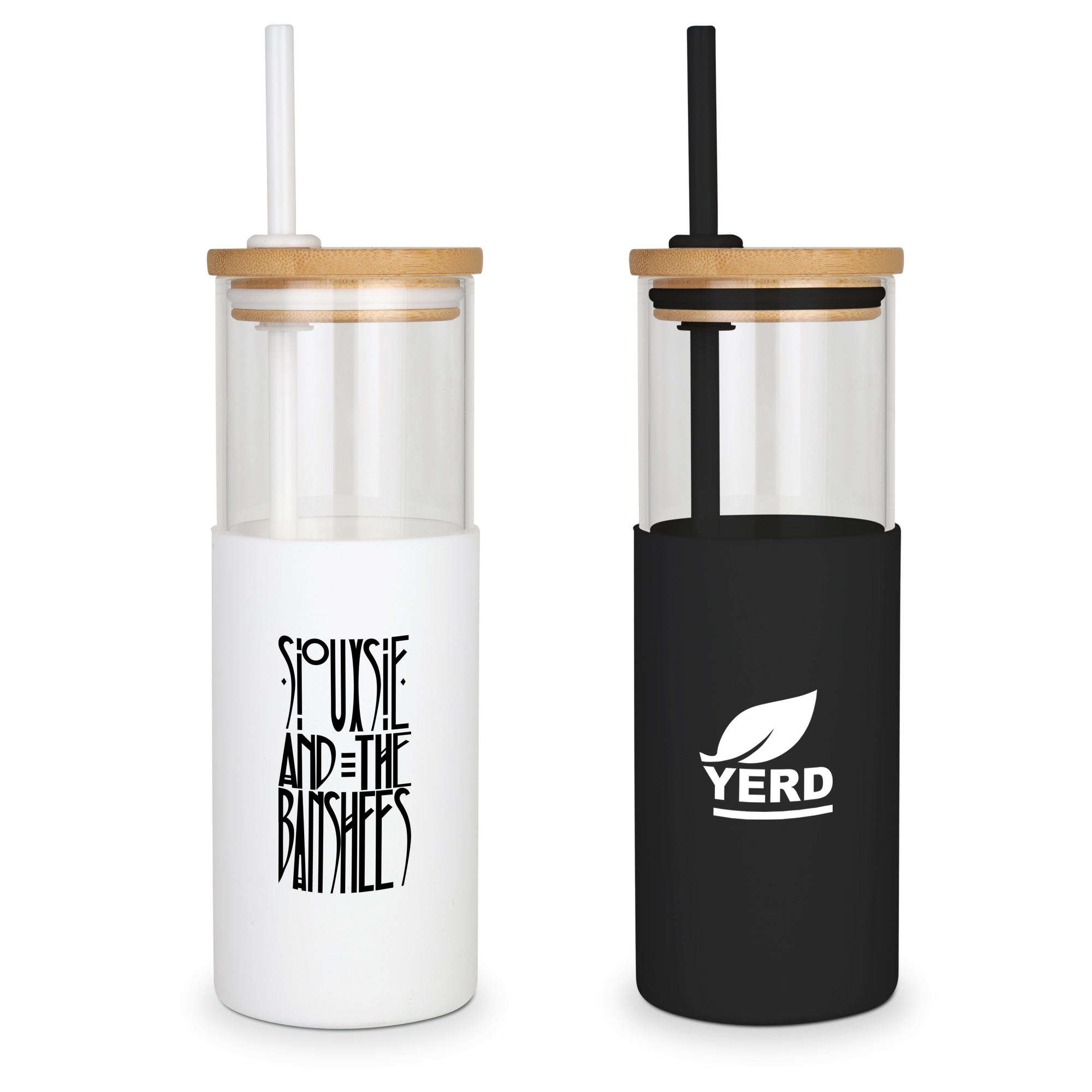 24 oz. Borosilicate glass tumbler Bamboo lid Matching silicone sleeve & straw