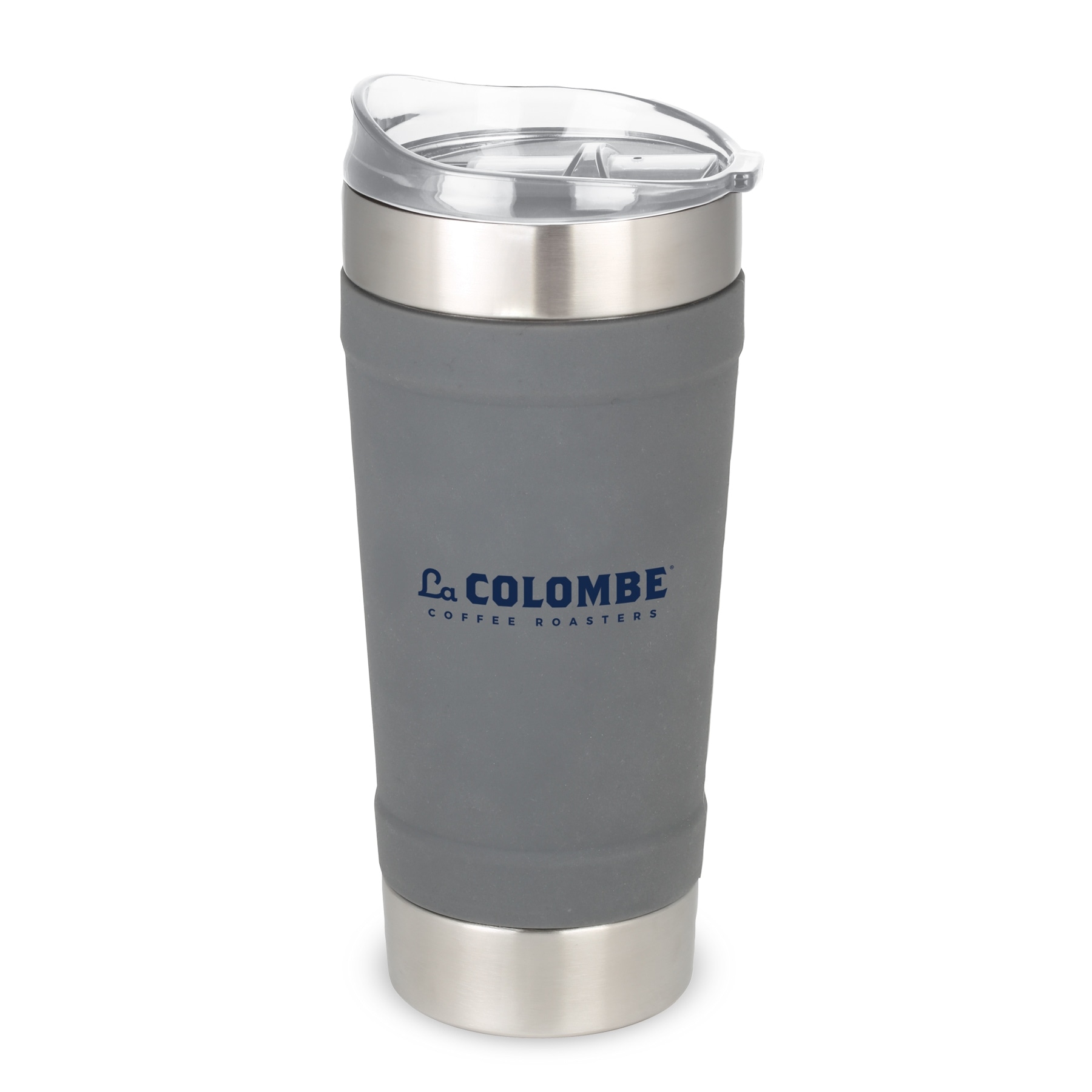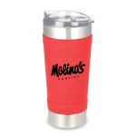 The textured silicone grip wrap around this 24 oz, double wall stainless tumbler to provide a sturdy grip. Imprint your logo on the smooth side to make a brilliant impression.