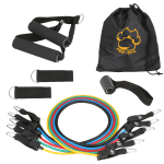 Get a workout no matter where you are with our convenient workout band set! You control exactly how tough of a workout you want with 5 different band strength levels ranging from 10lbs to 50lbs. More than one band can be hooked together for up to 150lbs of resistance, making this the perfect workout set for anyone whether new or experienced. 2 handles and ankle straps allow for a full body workout, while the door anchor allows you to hit those muscles from different angles. Turn your dream body into reality! Included storage bag for easy portability.