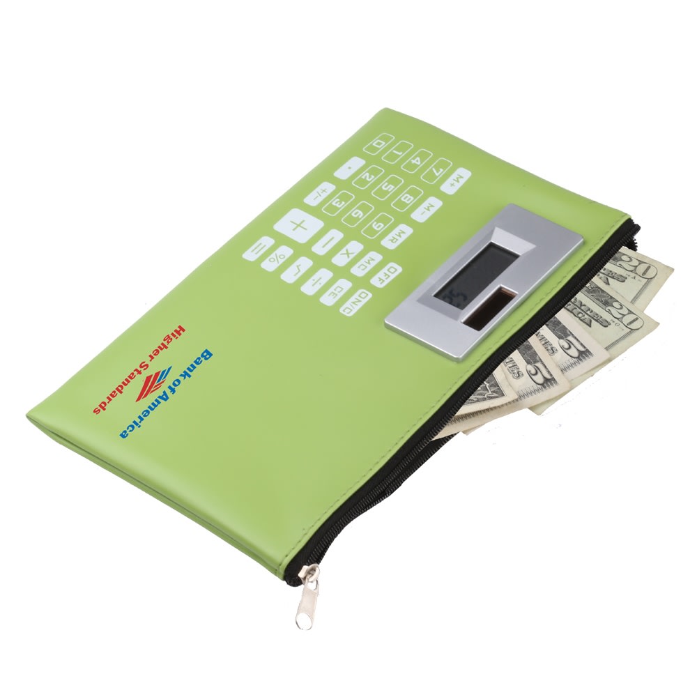 This solar powered calculator money bag wallet allows you to conveniently calculate exchange rates while you are traveling abroad by keeping your money and calculator all in one item.