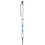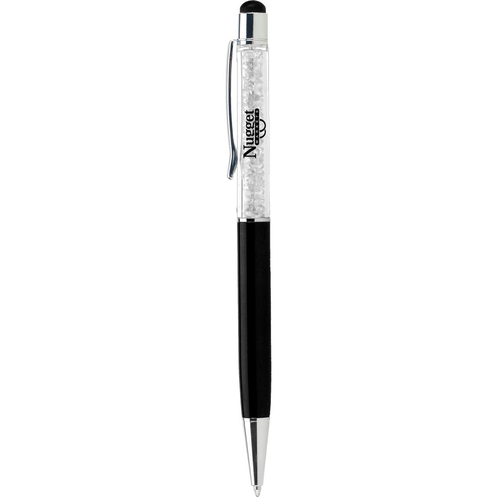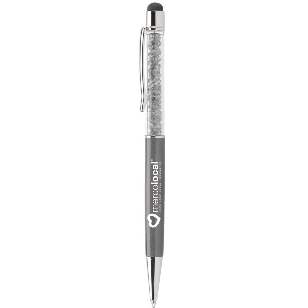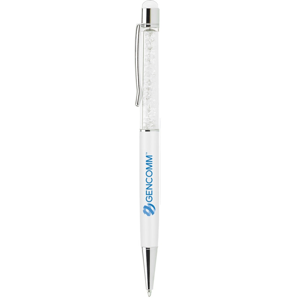 Glitz and glamour are yours with a stylus pen that is color coordinated from end to end. Note the eye-catching gems and the matching capacitance tip! Screen print over the colorful gems or laser engrave on the aluminum barrel.