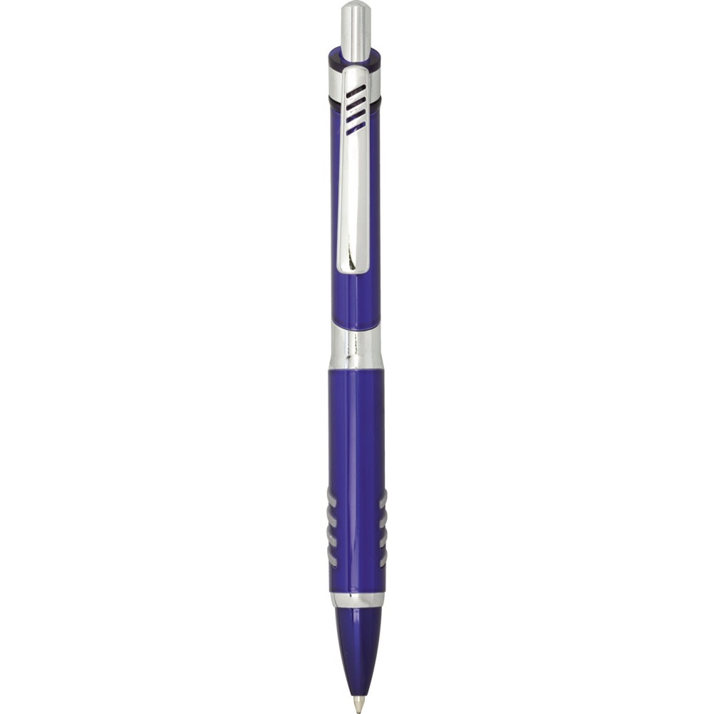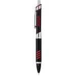 With rubber grip strips notched along its brilliant barrel, matching cut outs in the clip, and shiny chrome accents, this push action ballpoint’s dynamic style will send your heart aflutter.