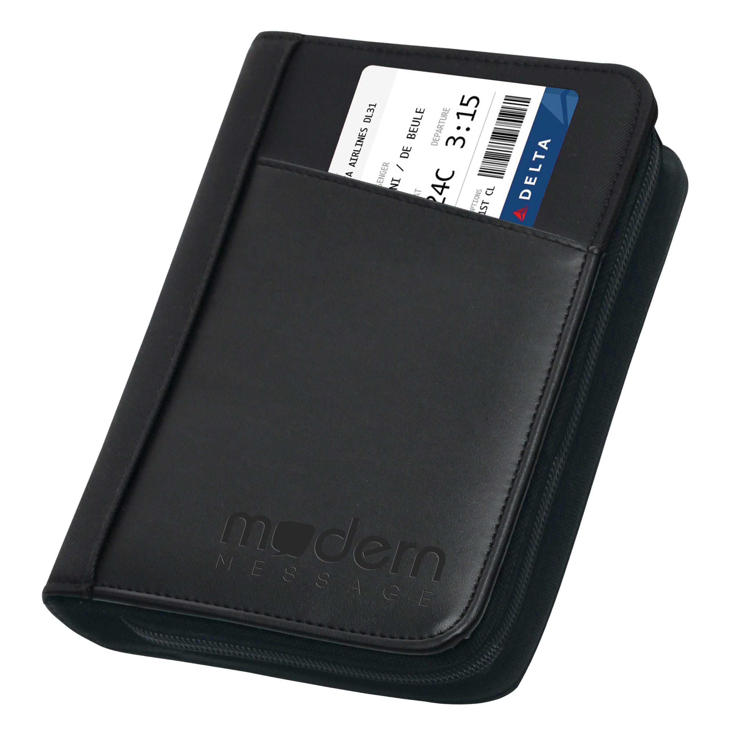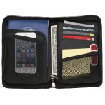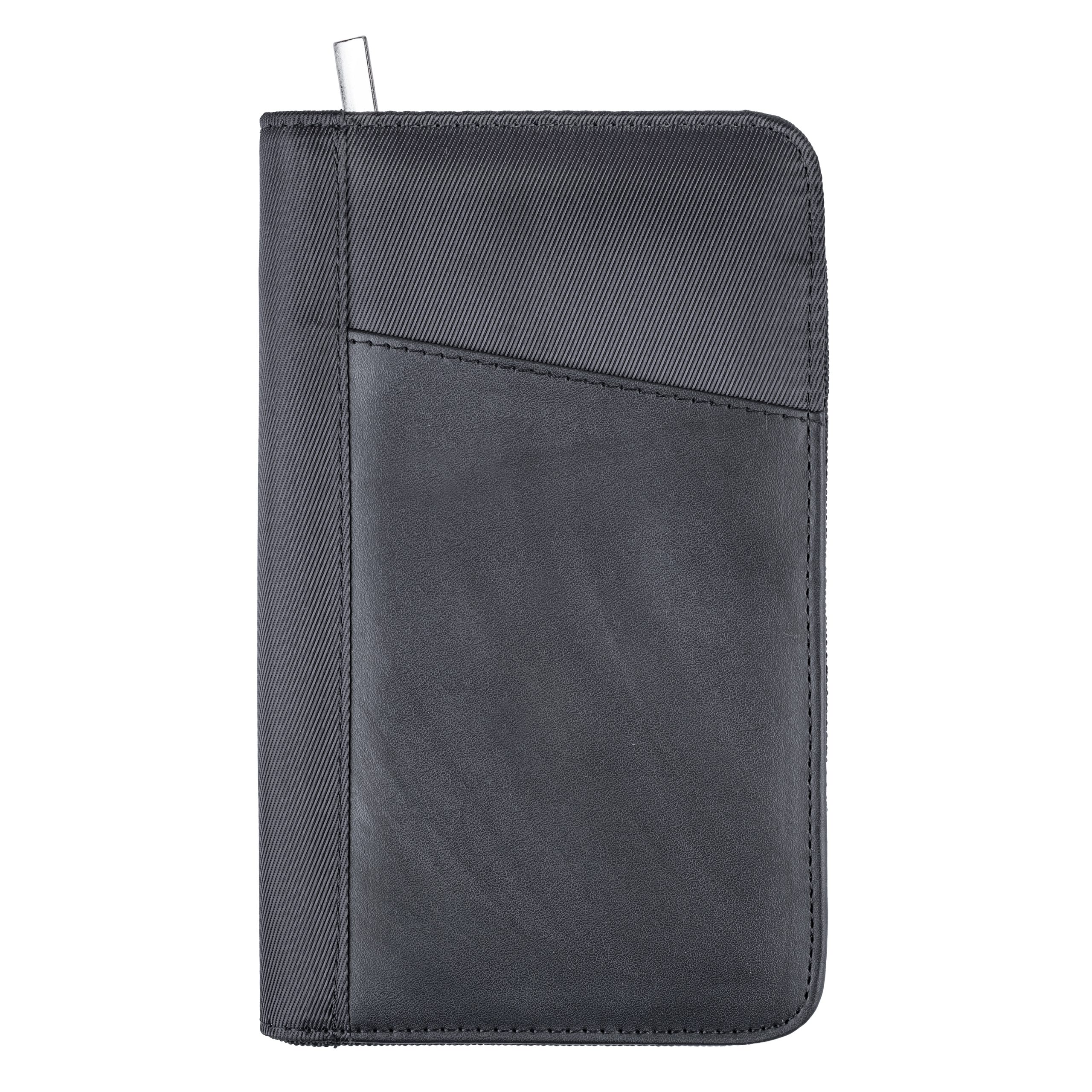 The Cartera is a deluxe personal organizer. It features an exterior pocket for quick and easy access to your essentials along with a large main zippered compartment with mesh pockets, card slots and a zip closed internal pocket. Made of Polyester with simulated leather trim.