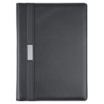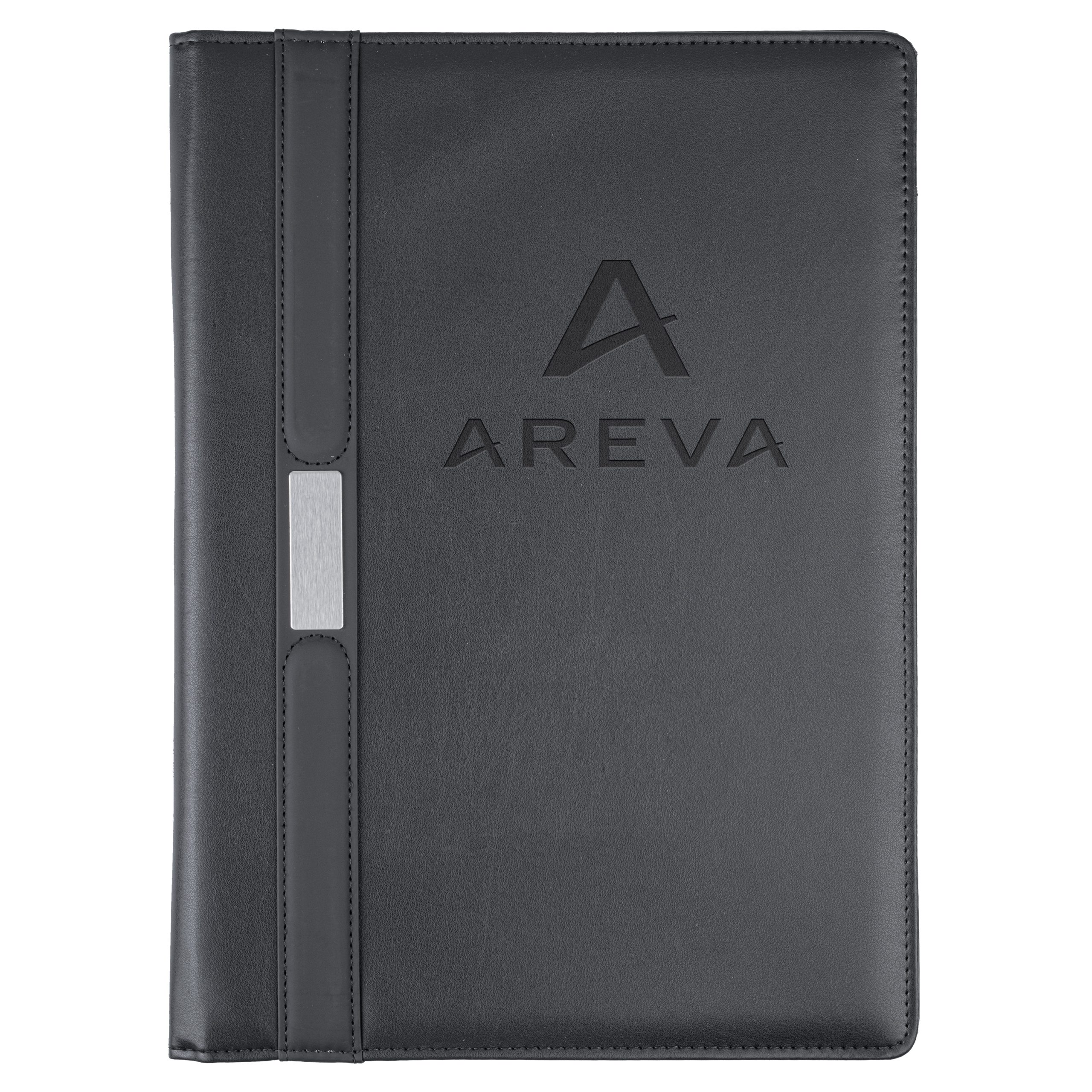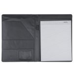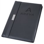 The silver accents on the Ceres managerial padfolio offer rare elegance to complement any imprint. Inside, the padfolio features pockets for cards, flyers, and files, an 8-1/2â x 11â memo pad, and a handy pen loop. Made of simulated leather.(Pen not included)