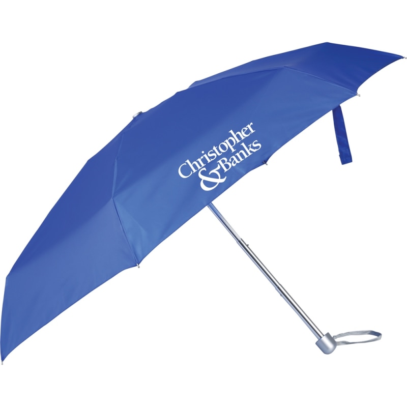This compact, 6 panel umbrella with 40 arc and telescoping, manual opening is complemented by its stylish carrying case . The case is sized to fit in most briefcases or handbags, while the sturdy aluminum and FRP rib frame will withstand the toughest of storms. Choose between the standard imprint areas on the handle or the case to best show off your logo or imprint.