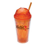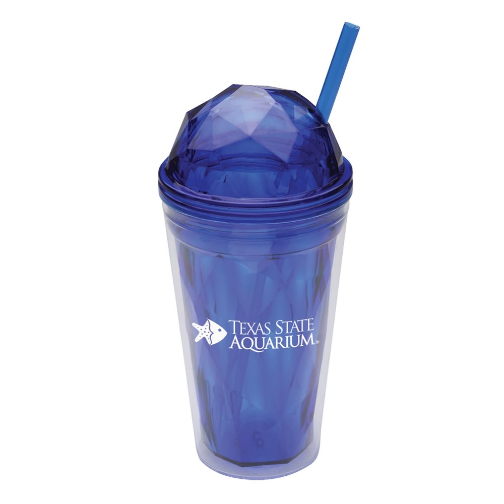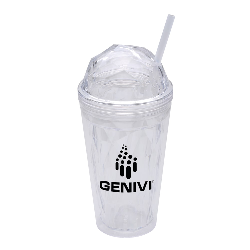 Our BPA-free double wall 16oz acrylic cup now comes with a geometric domed top for additional toppings upon your beverage. It comes with a matching colored straw and a small adjustable sipper ring to customize the straw’s height positioning. Made of AS Plastic.