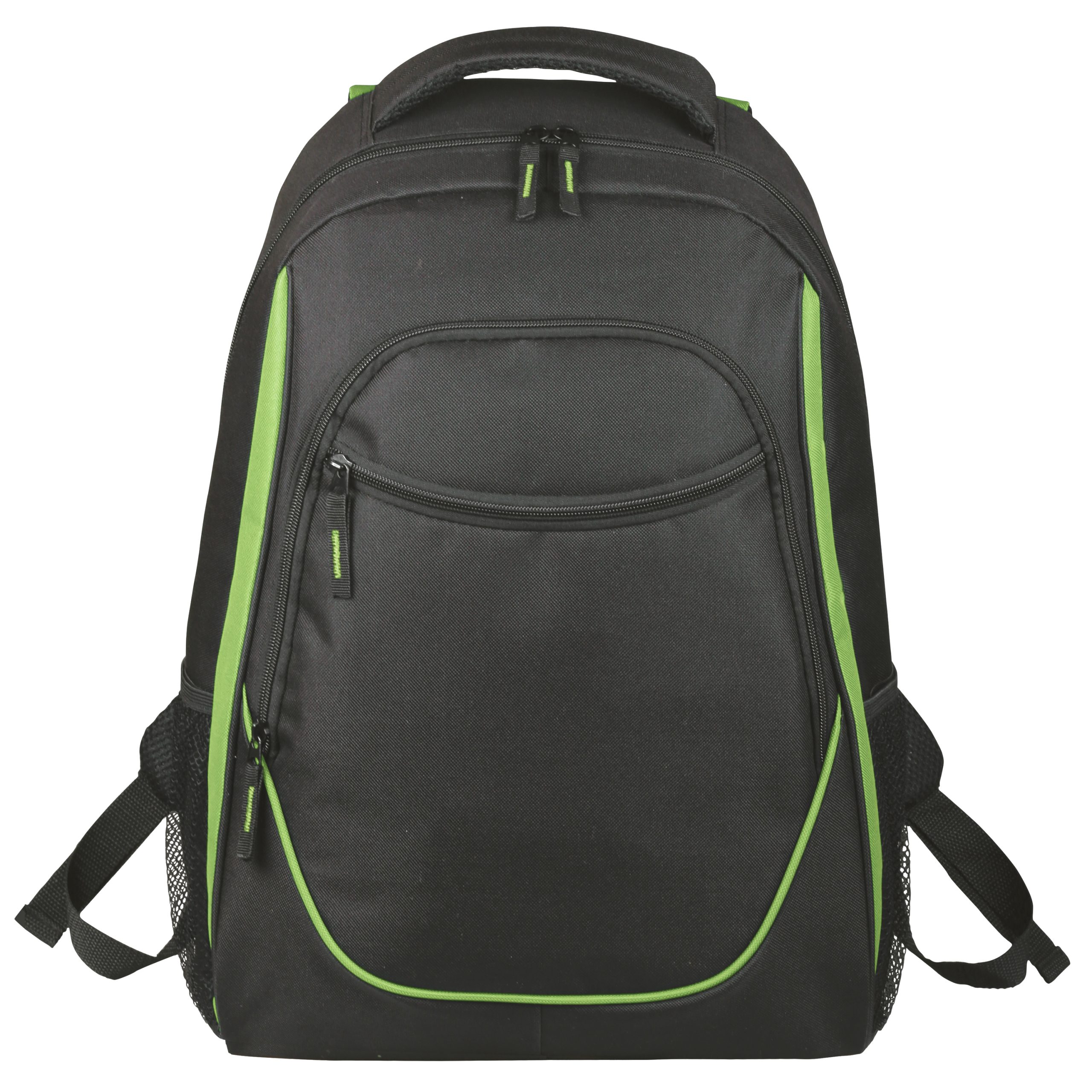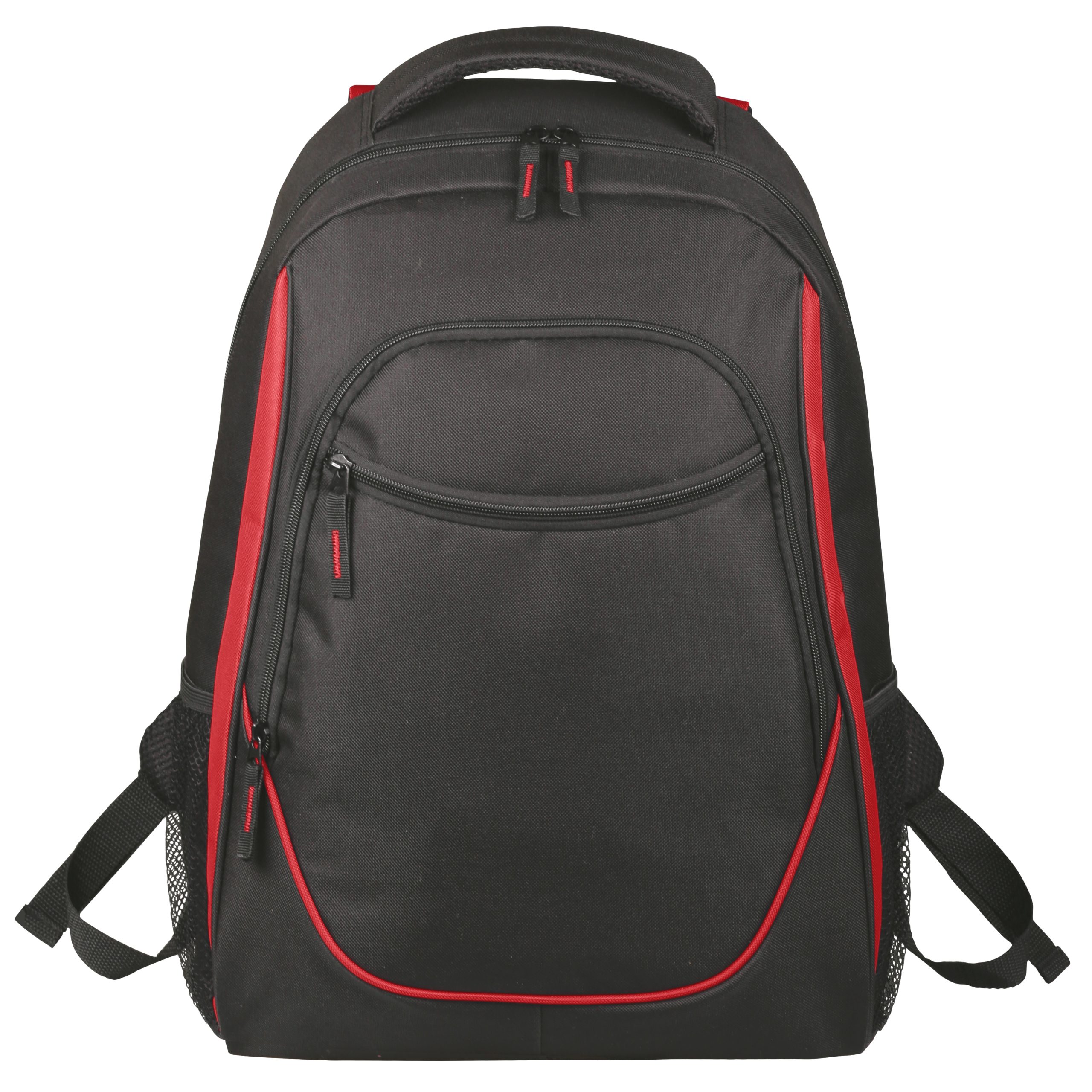 The Endeavor backpack provides ample storage with its two large front zippered pockets, two side mesh pockets and large main compartment with internal divider. The padded back and straps add to the comfort.