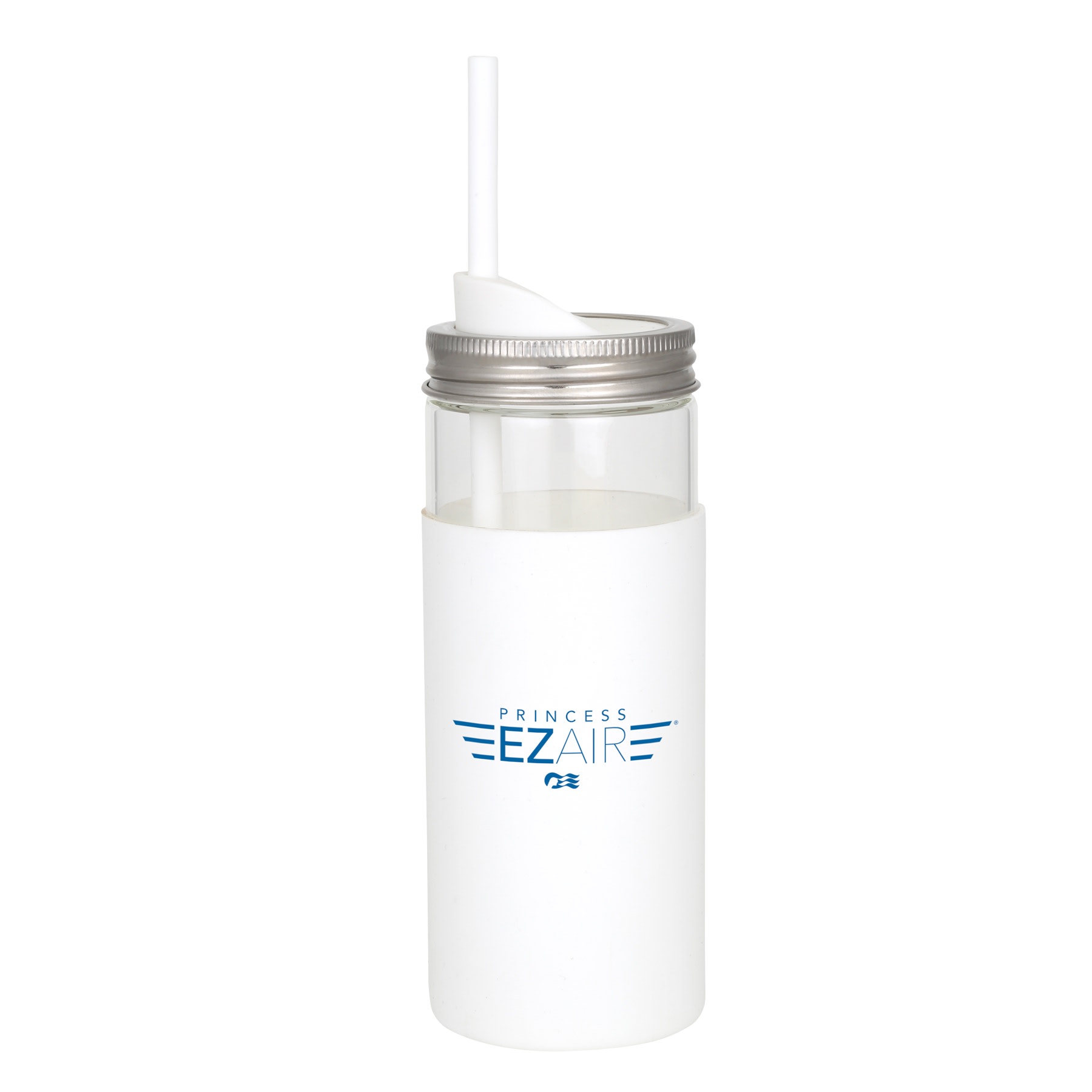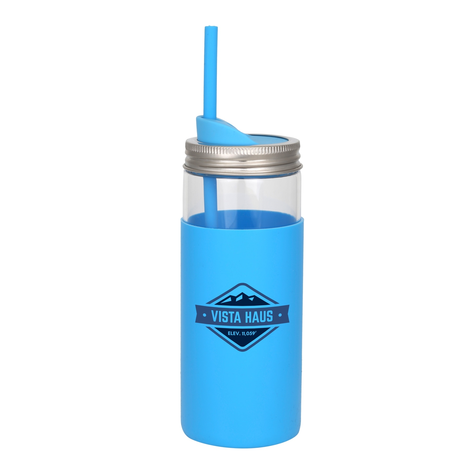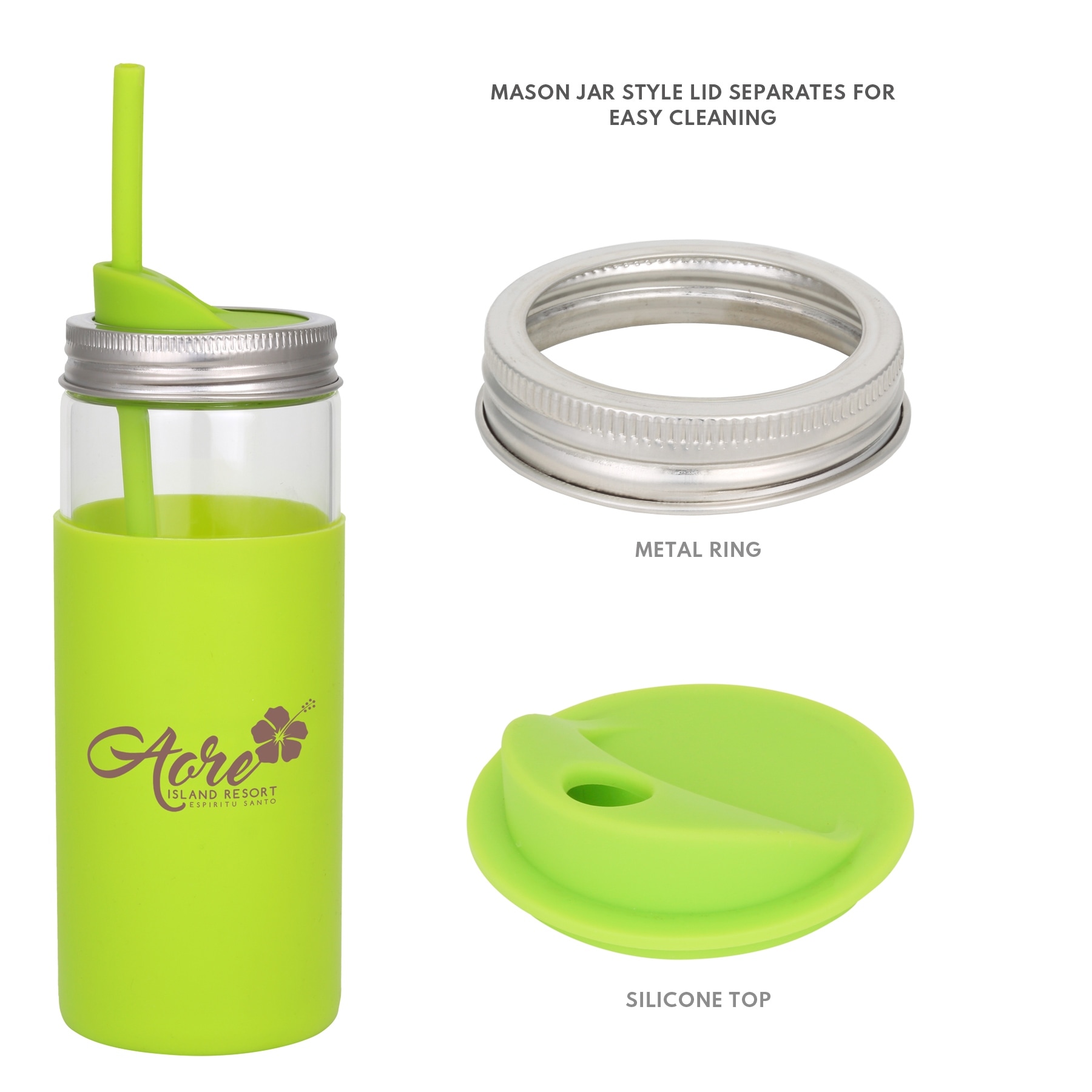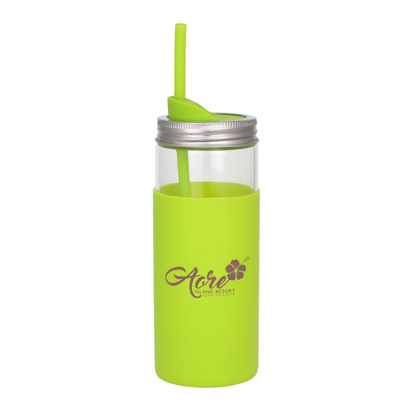 This 20 oz borosilicate glass tumbler features a mason jar style metal lid with removable silicone [more]