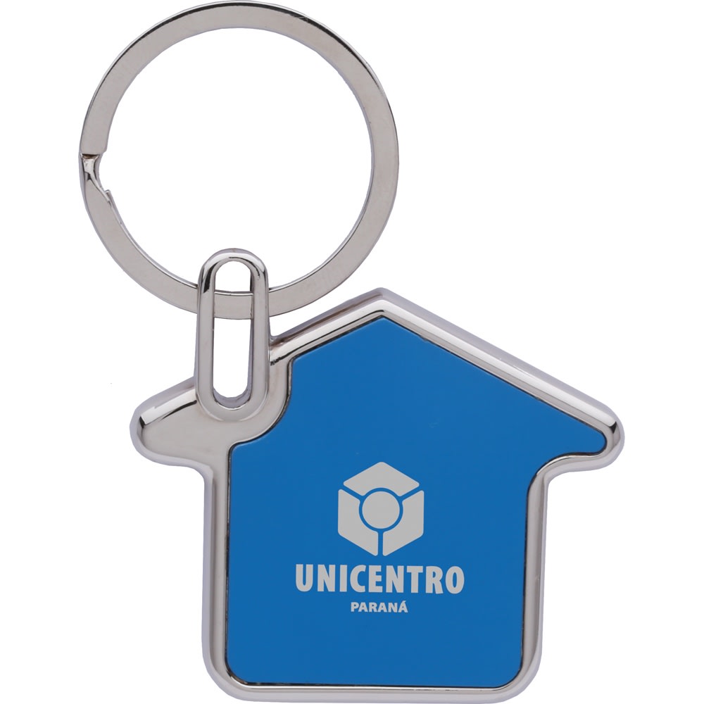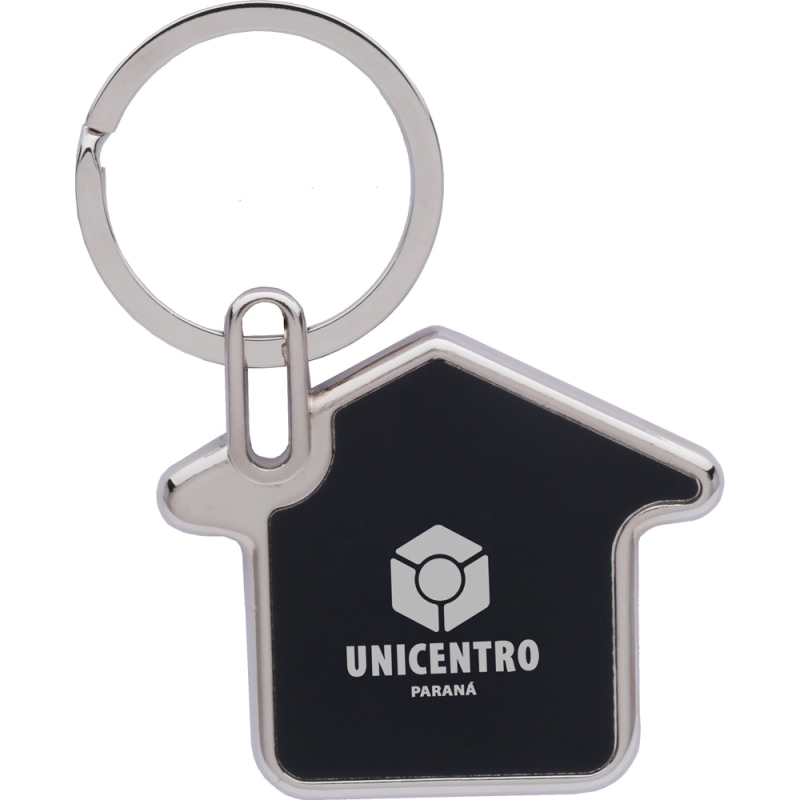 Keep all your keys together while showing off your logo with this sleek house shaped metal keychain.