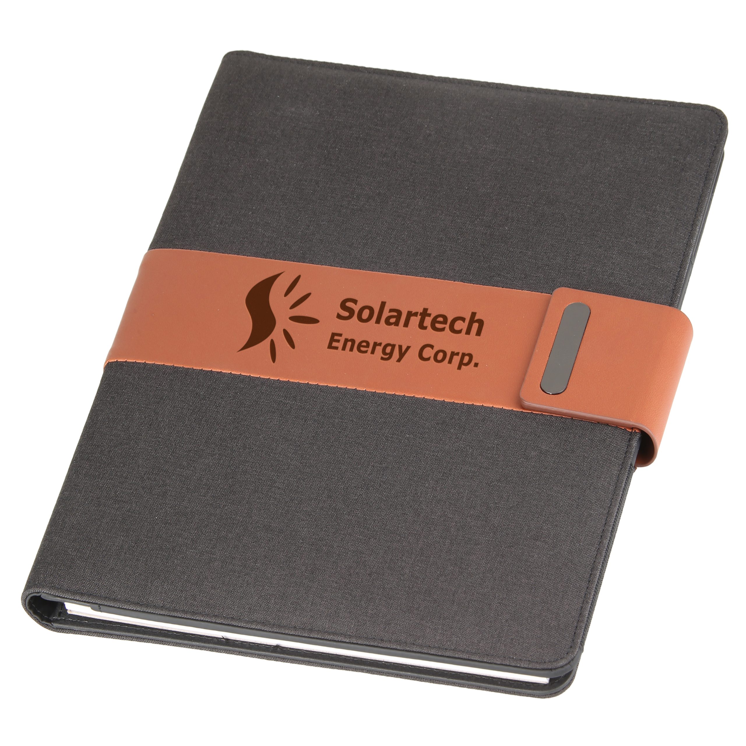 Canvas cover perfect for full color logos Engravable metal accent plate Interior pocket for flyers [more]