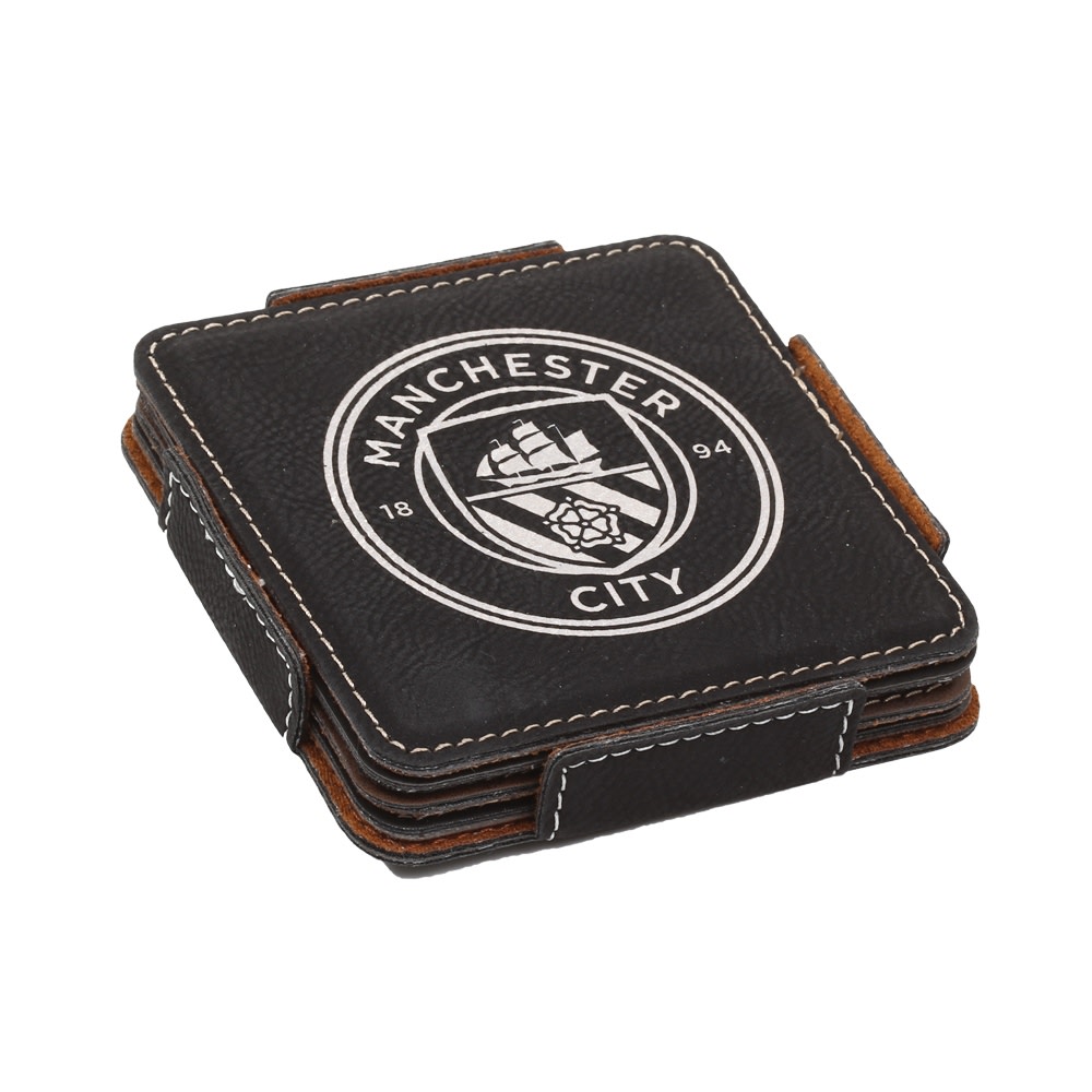 This leatherette coaster set (4 coasters + base) is laser engravable for a long lasting sharp imprint. [more]