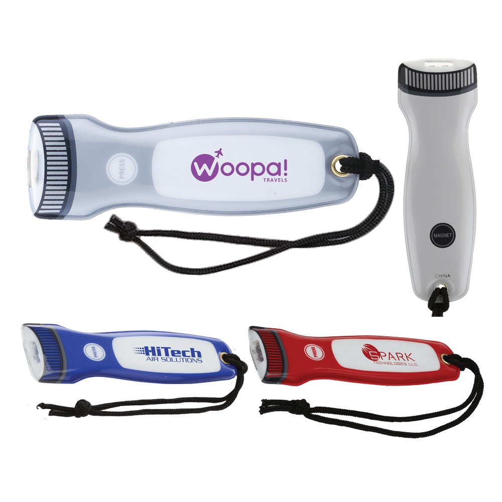 A perfect travel companion or even refrigerator magnet, this PVC magnetic flashlight is lightweight and convenient. The handy wrist strap will make sure that it doesn’t get lost.