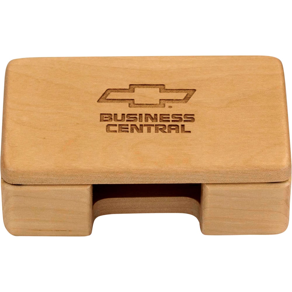 Enjoy the natural look and feel of our hansom, polished maple business card holder.