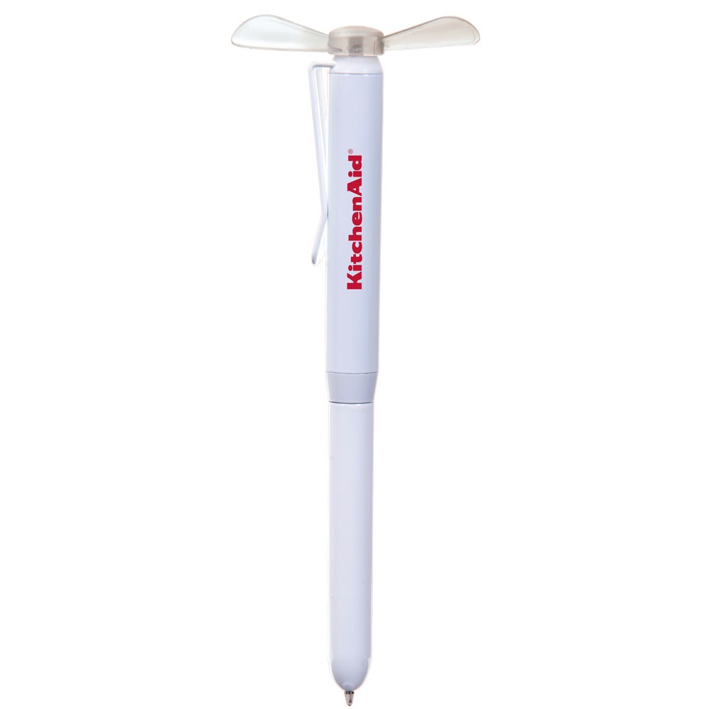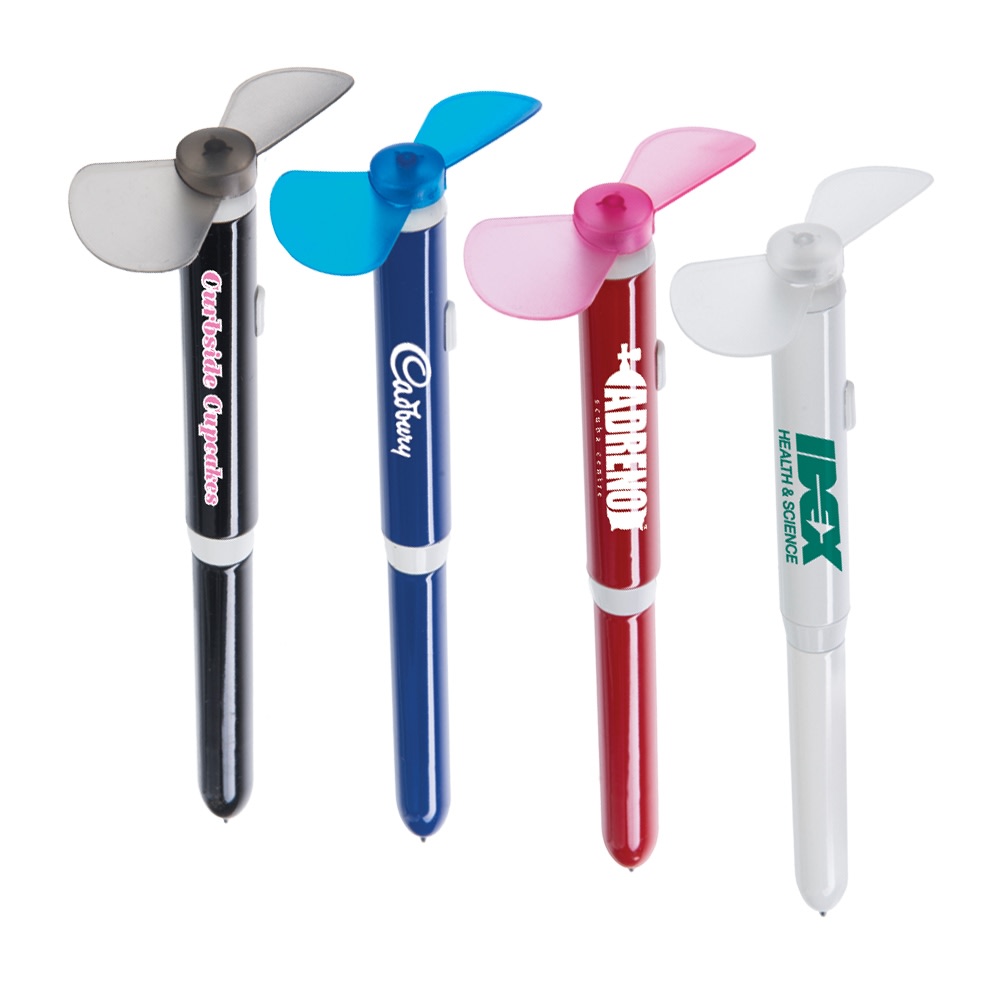 Stay cool with our twist-action pen and fan combo, The fan provides a strong breeze to keep you nice and comfortable.