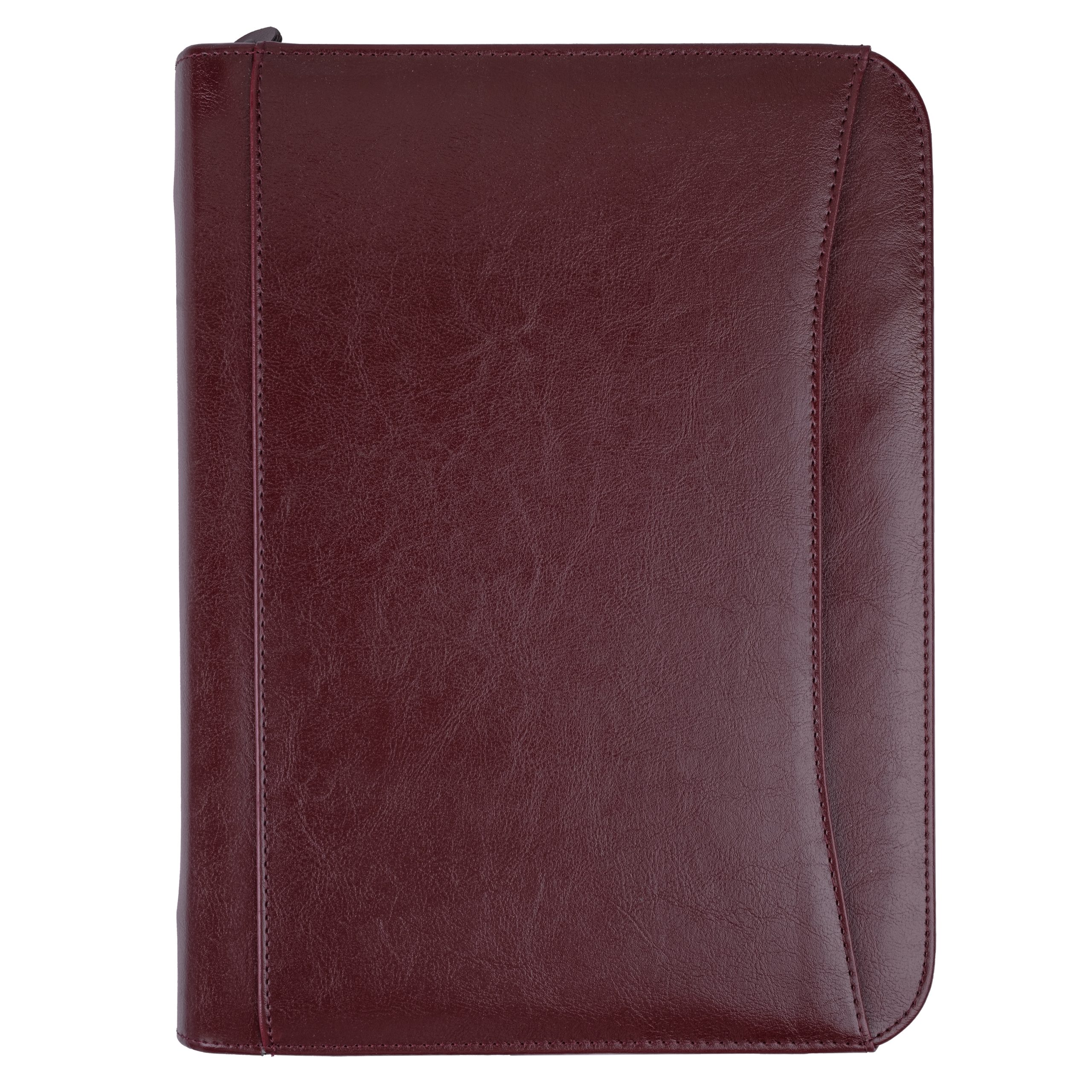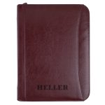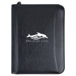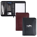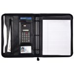 This executive 3-ring zip portfolio will keep you organized and professional. It features a 1-1/4â black metal 3-ring binder, removable solar calculator, interior organizer with numerous pockets, and 8-1/2â x 11â writing pad, and a pen loop. Made of simulated leather.