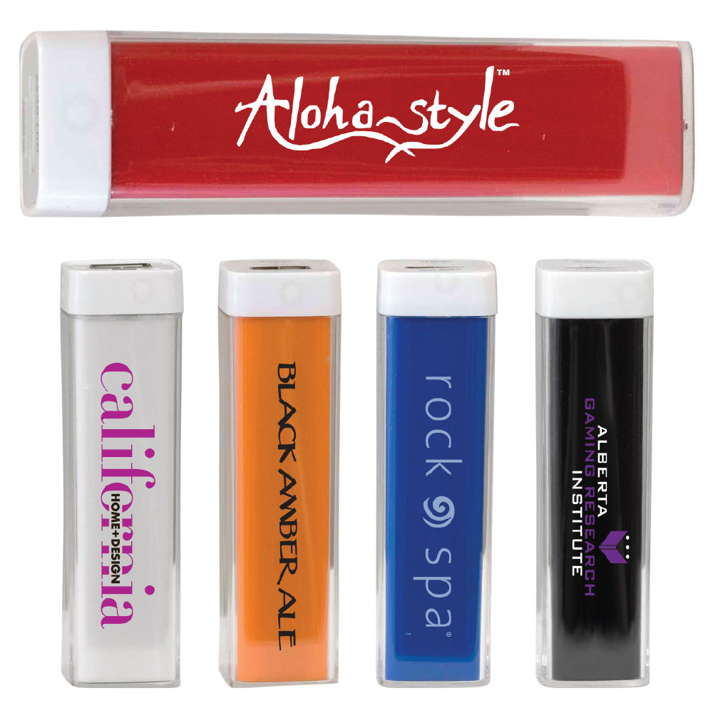 Fashionable and functional, this 2,200 mAh rechargeable power bank features a USB port to charge any mobile device. Choose a color to best match your logo. UL Certified.