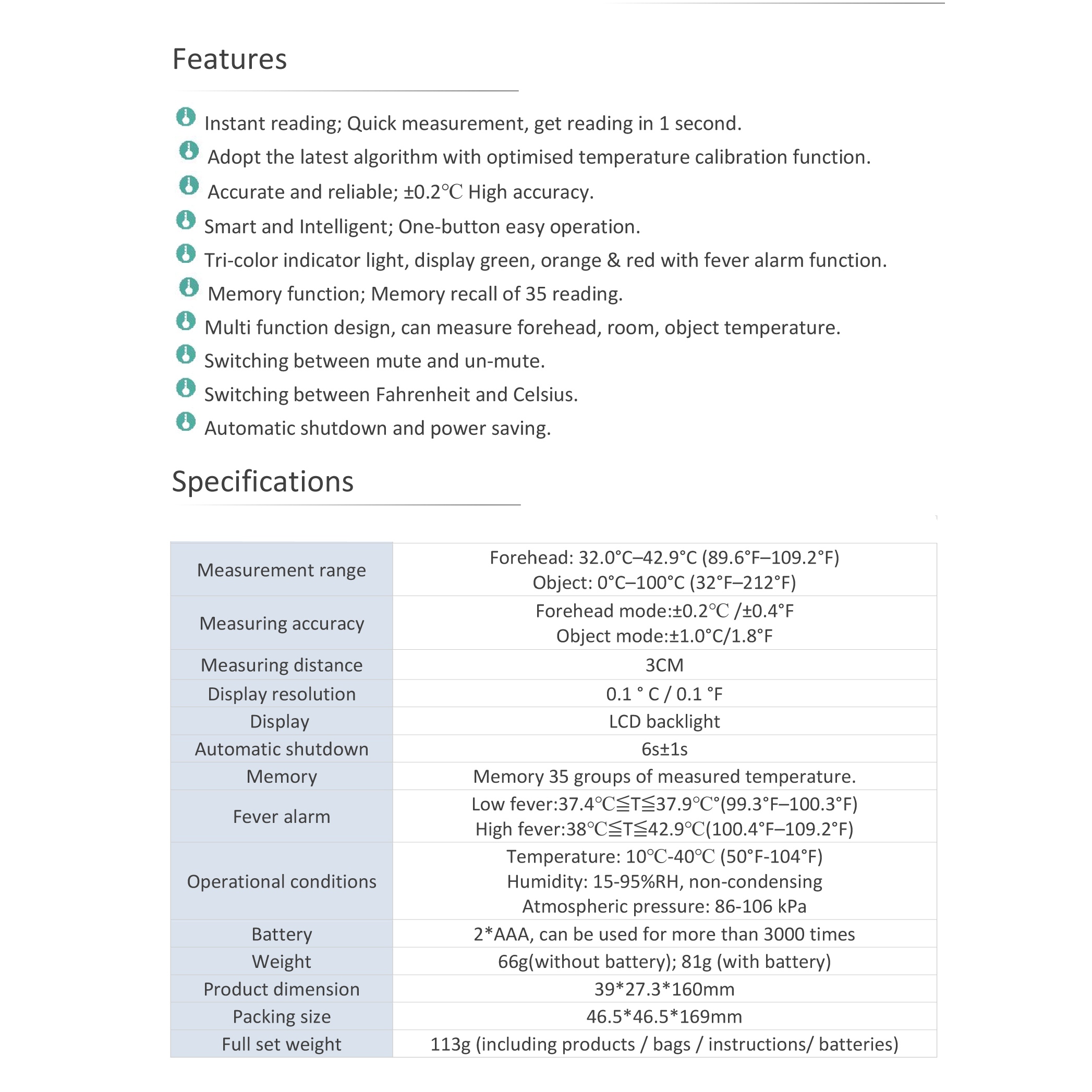 • PE-50 Contactless Infrared Thermometer